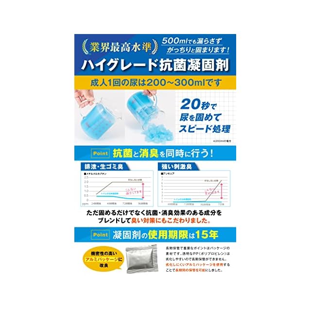 ✅【 「吸水力」「消臭性」を兼ね備えた高性能凝固剤を採用! 】トイレの女神は高性能凝固剤を採用!ハイグレードの凝固剤採用で安心してご使用頂けます! また劣化しにくいアルミ製のパッケージを使用することで長期保管することを可能にしました。