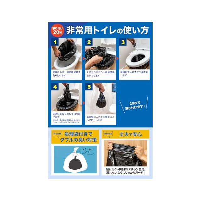 ✅【取付はたったの20秒】トイレに被せるだけの簡単取付なので、ストレスなく簡単にお使いいただけます。災害用トイレとしてだけでなく、携帯トイレとしてトイレにすぐにいけない場合にも活躍します。介護の際にもお使い頂ける簡易トイレです。