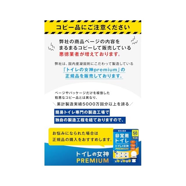 ✅【簡易トイレといえば、やっぱり "トイレの女神PREMIUM" 】トイレの女神PREMIUMは、国内の数々のアワードを受賞し、日本企業開発の徹底した品質管理で、もしもの時にも安心で使いやすいコストパフォーマンスの良い商品をお届する防災ブランドです。日本の福岡県で製造した凝固剤は、防災士監修のもと改良を重ね、強力な消臭・抗菌効果を実現しました。