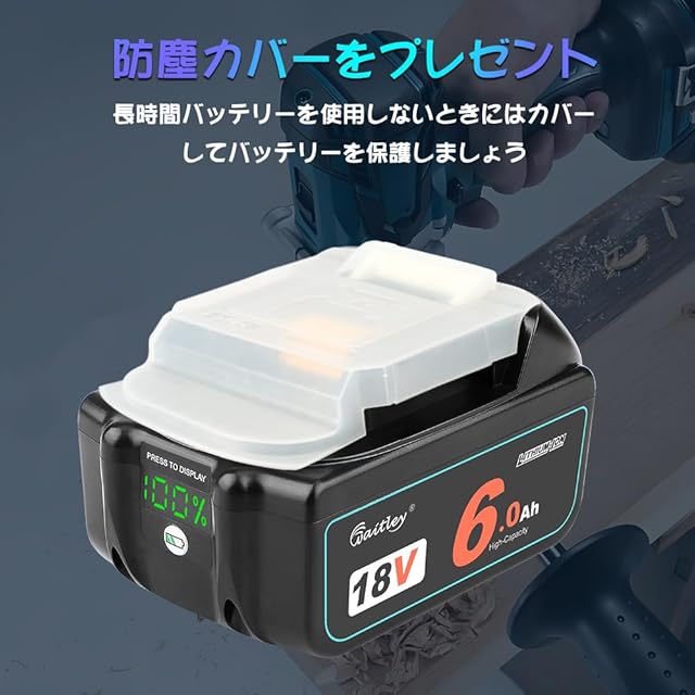 Waitley マキタ 18vバッテリー 6.0Ah 互換バッテリー BL1860B 18V 6.0Ah 電動工具用 6000mAh 大容量電池 BL1840 BL1850 BL1850B BL1860対応 デジタル%残量指示付 防塵カバー付き 純正低速充電器をおススメします PSE認証済