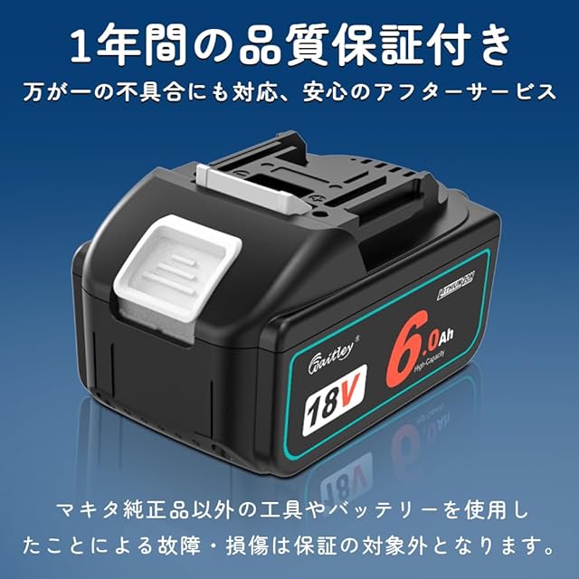 【低不良率と12ヶ月保証付き】本製品はPSE・CEマーク取得済 です。専門的な検査機械で十分に検査された高品質なマキタ互換バッテリーです。少ない不良率を実現しています。ご満足な体験をご提供するために、本製品は12ヶ月保証付きです。ご使用中に何か問題がありましたら、どうぞ遠慮なくご連絡ください。 *ご注意:弊社の互換バッテリーはマキタ純正品にのみ対応しております。他社製互換製品のご利用は保証対象外となります。また、バッテリーを長期間放置する場合は、完全に充電して適当に収納して、必ず1ヶ月毎に1回程度の充電を定期的に行ってください。
