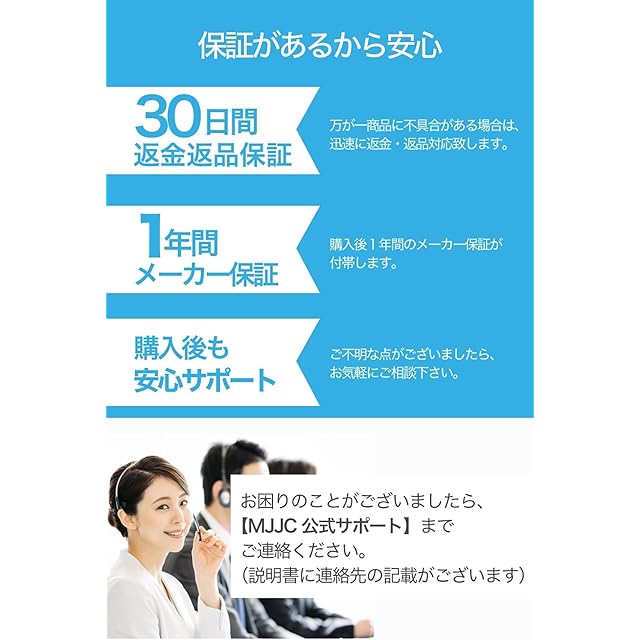 ✅メーカー1年保証。製品の不具合は迅速に保証対応致します。お困りのことがございましたら、【MJJC公式サポート】までご連絡ください。(説明書に連絡先の記載がございます)