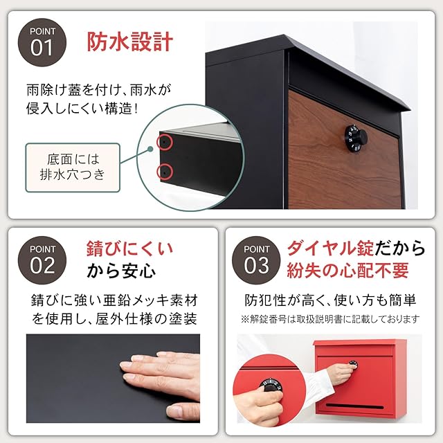 ✅【大容量そして上品なデザイン】エレガントで北欧風のデザインが特徴で、大容量の投函スペースが備わっています。8カラーから選択でき、好きな色をお選びいただけます。ダイヤル式のロックを採用し、簡単に施錠でき、鍵を無くす心配もありません!