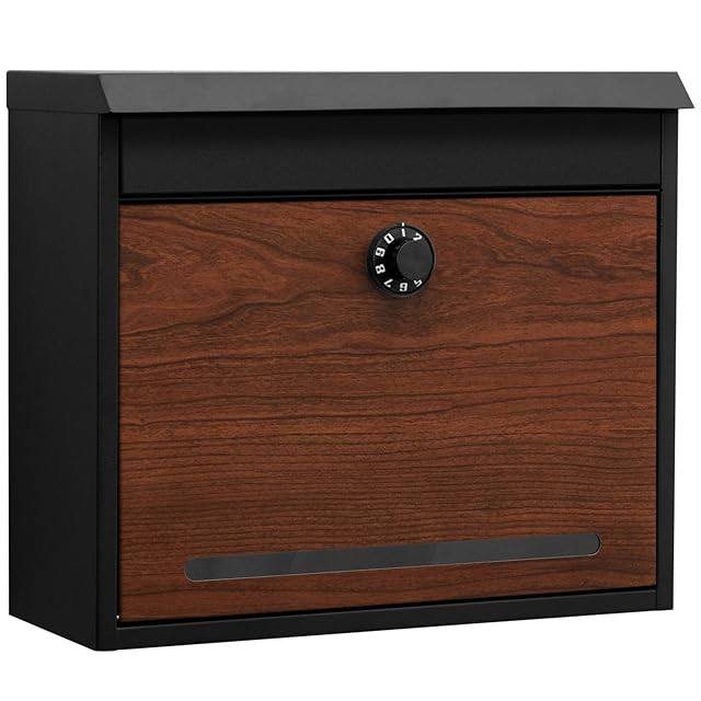 PYKES PEAK ポスト 壁掛け 郵便ポスト 郵便受け ダイヤル式 A4サイズ レターパック対応 おしゃれ 大型 縦型 ブラックxオーク扉