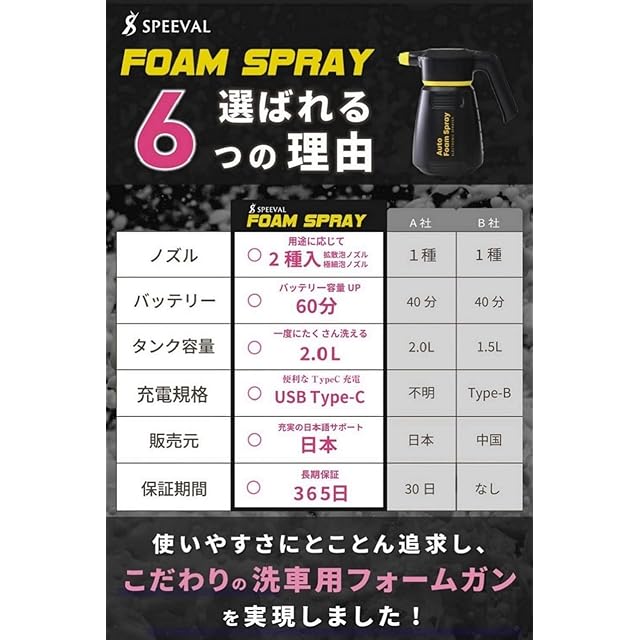 SPEEVAL 自動泡噴霧器 フォームガン 洗車 電動 コードレス 充電式 2.0L 泡洗車