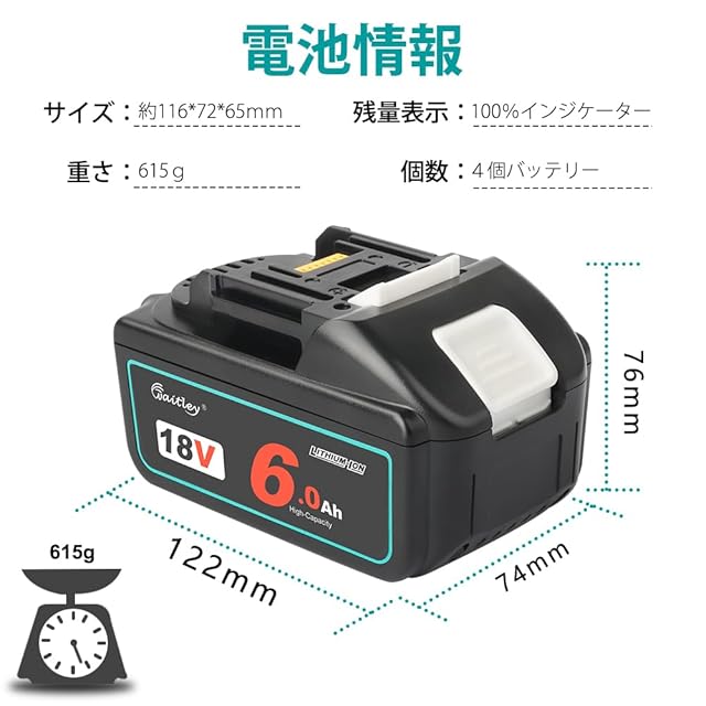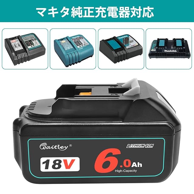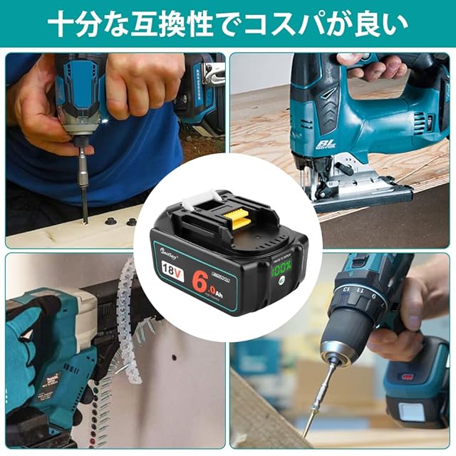 【互換性】対応電池シリーズ: マキタ 18V バッテリー BL1815N, BL1820B, BL1830B, BL1840B, BL1850B, BL1860B, BL1890BBL 本製品は6.0Ahの高容量で、頻繁に充電する必要がありません。 対応充電器: マキタ純正充電器DC18RA, DC18RC, DC18RDなど、急速充電器は対応できます。 充電ヒント:バッテリーを充電完了後、悪影響を与えないように充電器から取り外してください。
