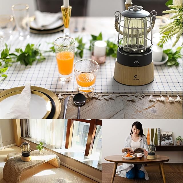 【クラシック&モダン】持ち手部分には麻紐を使用し、ランタンのボディには竹を採用しています。外観はクラッシック&モダンをテーマとし、直置きやテント・木の枝に引っ掛ける・キャンピングカーに吊るすなど、様々な場所でご使用いただけます。 また、重量は僅か540g程の軽量化デザインで持ち歩きやすいので、アウトドア、キャンプ、夜釣り、散歩などにピッタリです。
