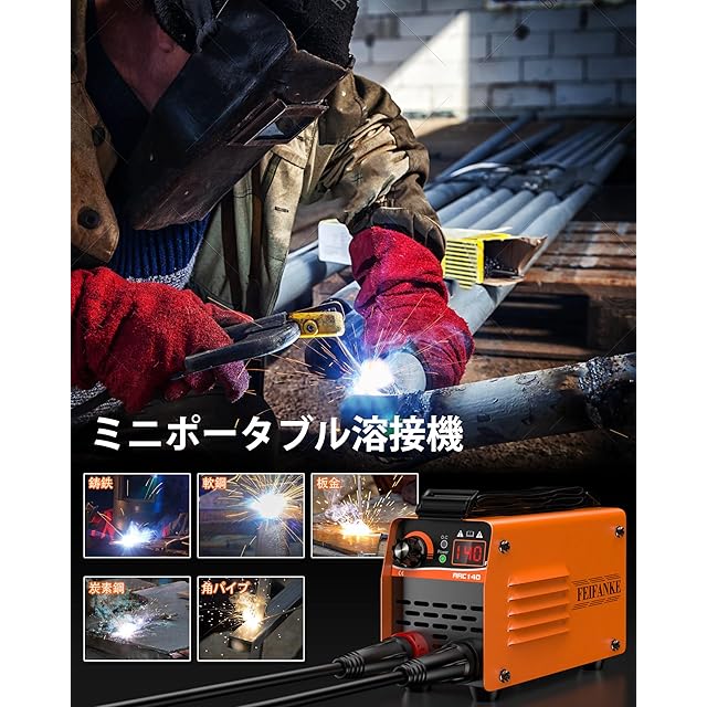 FEIFANKE アーク溶接機 140A ミニポータブル溶接機 热启动 IGBTインバーター 初心者向け 超小型 軽量 家庭用 溶接機 100V専用 210x130x90mm 日本語取扱説明書付き