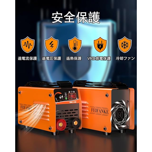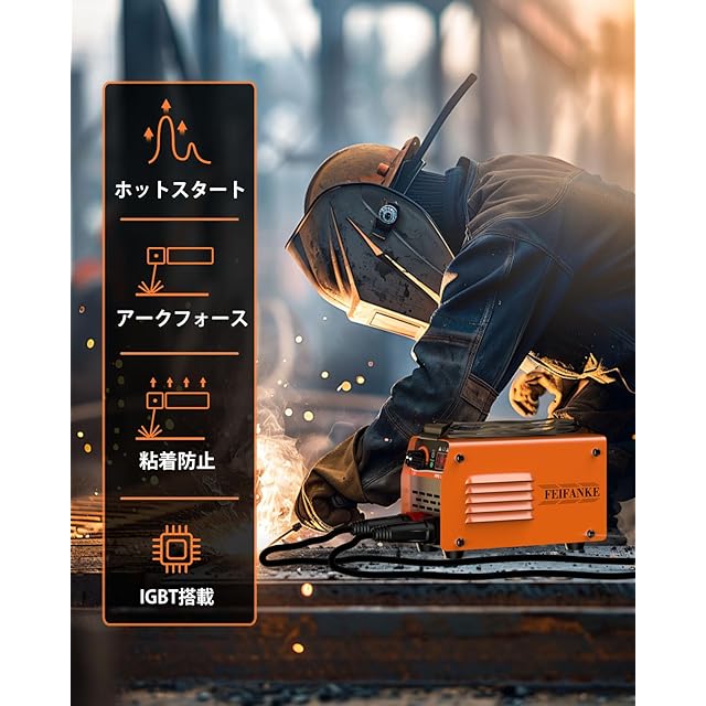【先進のIGBTインバーター技術】FEIFANKE ARC140超小型溶接機は、先進のMCUおよびIGBTインバーター技術を搭載しており、溶接機の信頼性が向上します。強力なアークにより、より均一な溶接と深い溶け込み、安定したアークと溶接電流を実現します。