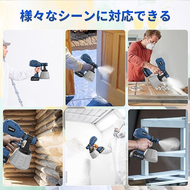 【各種塗料対応】1200ml大容量塗装機で、一度に多くの面積を塗装できます。この電動スプレーガンは粘度80 din/sまで対応し、40000 rpm±10%の無負荷回転数、効率的かつ迅速にペイントできます。水性塗料や油性塗料に対応できる電動スプレーガンです。