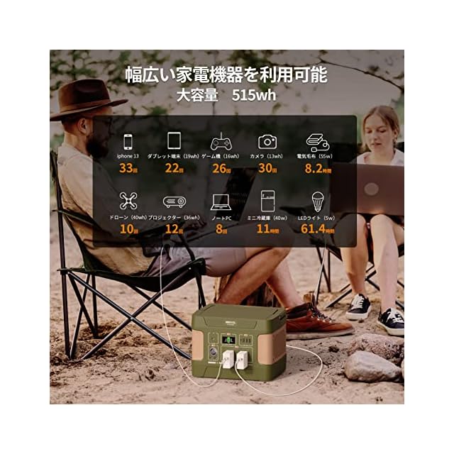 【パッケージ内容】ポータブル電源本体×1、ACアダプター+コンセントケーブル×1、車載用充電シガーソケットケーブル、取扱説明書(日本語)が付属します。車中泊、キャンプ、アウトドアイベント、パーティー、バーベキューから、災害対策や停電時の非常用電源まで幅広く活用できます。