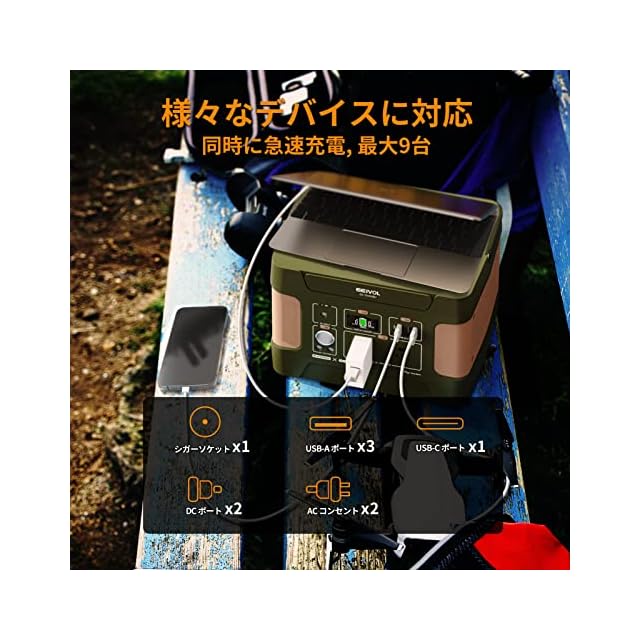 【最大9台のデバイスを同時充電】余裕たっぷりの出力ポートで様々な機器や端末に充電できます。USB端子はPDやQC3.0急速充電に対応したポートを含め合計4個搭載しており、AC出力は2口搭載しています。USB、DC、ACなど、合わせて最大9個の機器に同時給電が可能です。あらゆるデバイスに対応でき、さまざまなものへ電力の供給が可能です。