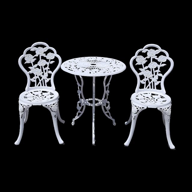TangXiaoQiアウトドア鋳造アルミテーブルチェア3点セット ガーデンガーデンガーデンテーブルチェア 金属一台2チェア ベランダ ガーデン 庭 小酒館 アウトドアストア (白)