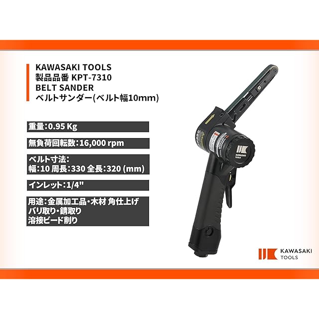 KAWASAKI TOOLS ベルトサンダー 10mm幅 KPT-7310 黒色