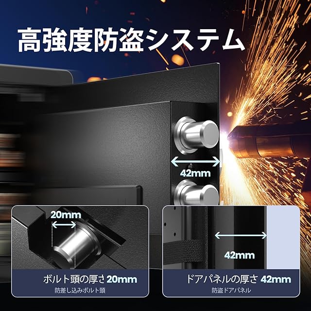 防犯強化メカニズム: 特殊強化金属製ダイヤルと分厚い鋼鉄ドア(厚さ5mm)の二重防御構造。耐工具性に優れた防犯性能で、住宅密集地でも安心の耐久設計