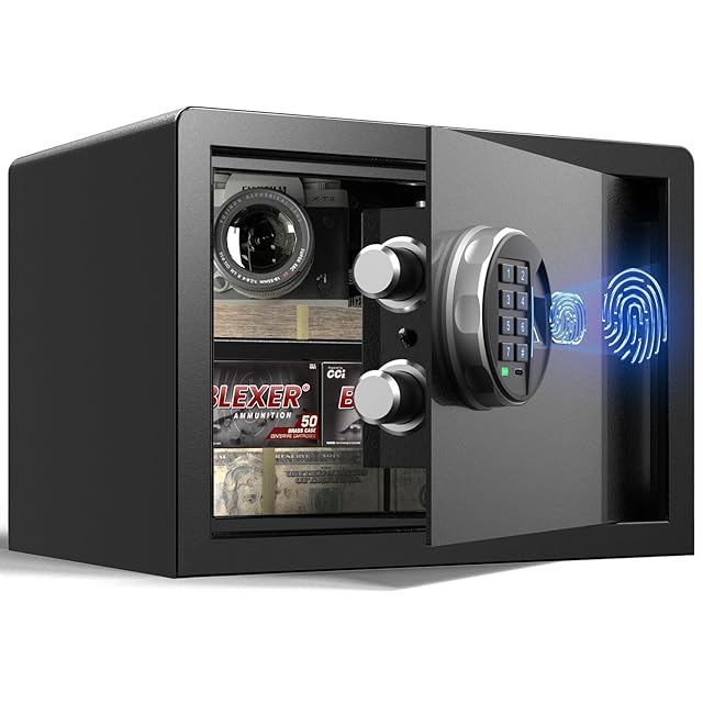 Grimtron スマート生体認証金庫(23L)指紋/暗証番号両対応・静音モード・バッテリー残量表示・防錆防犯設計|コンパクト小型金庫 家庭/オフィス用