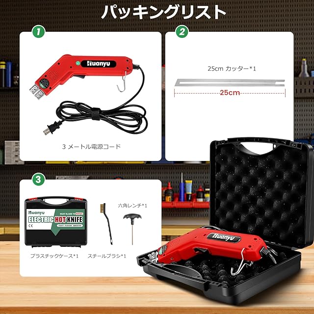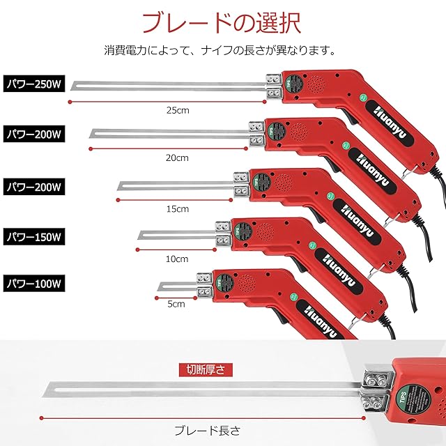 Huanyu 発泡スチロールカッター 25CM/250W ホットナイフ 50-500℃温度調節 フォームカッター フォーム/スポンジ/スチロール/断熱板/押出板/EPE 収納ケース付き 110V (250W,25CM)