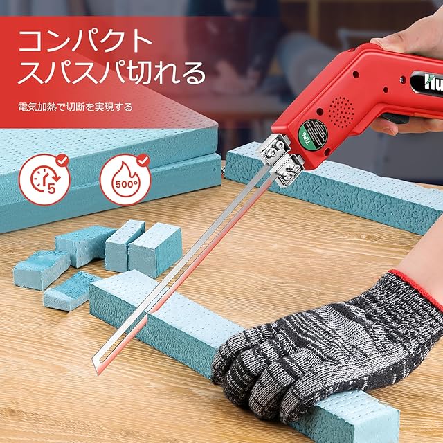 【精密な温度調節で、様々な素材に対応】50-500℃の無段階温度調節ノブを搭載。スイッチを押すだけで5秒で急速加熱。素材に応じて温度を正確に調節できるため、毎回きれいなカットが可能です。ご注意:連続使用は5分間までで、15秒の間隔を空けてください。