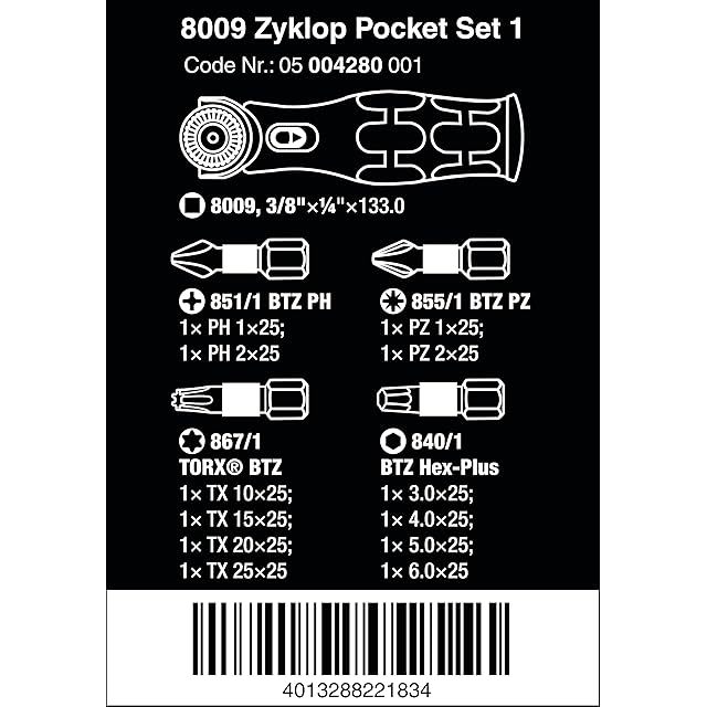 Wera(ヴェラ) 05004280001 | 8009 Zyklop首振り式ラチェットドライバー ポケット セット 1, 13点 【日本正規輸入品】