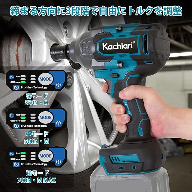 Kachiari 充電式 インパクトレンチ 強力 18v れんち 700N・M 3段トルク調整 正逆転両用 ブラシレスモーター搭載 無断変速 正逆切替 トルク700N・m ブラシレスモータータイヤ交換 車用 ホイールナット 家具組み立て 自動車整備 DIY用 マキタ18Vバッテリー対応 BL1830 BL1840 BL1850 BL1850B BL1860 BL1860B 【工具本体だけ】