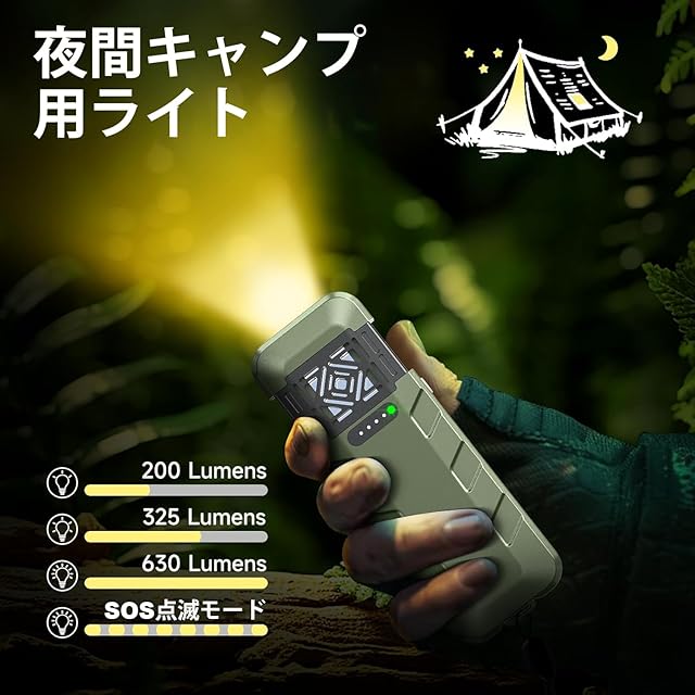 【2-in-1機能】電子蚊取り器は懐中電灯としても使用可能で、3種類の照明モードとSOS点滅モードが搭載されています。9600mAhの大容量バッテリーは満充電時、最大44時間の懐中電灯機能を提供します。また、大容量バッテリーにより他の電子デバイスの充電もサポートします。この製品は旅行をより便利にします。