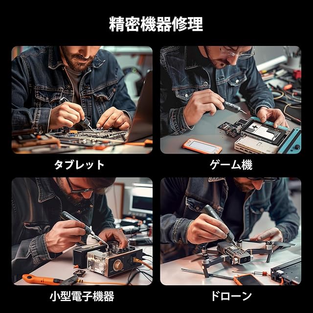 【強度調整可能】正転と逆転に切り替え可能で、0.16Nm、0.2Nm、0.3Nmの3段階の可調電動トルクと3.5Nmの手動トルクを備えており、さまざまな作業ニーズに正確に応えます。タブレット、スマートフォン、腕時計、電子ブレスレット、カメラなどの精密機器に非常に適しています。