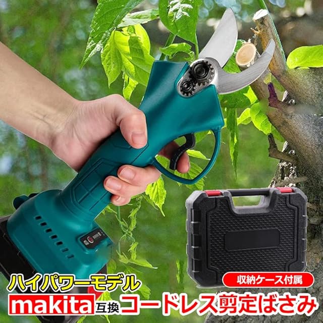 充電式 コードレス 剪定ばさみ makita マキタ ハイパワー 18V バッテリー リチウムイオン 対応 はさみ ハサミ 枝切り 電動工具 makita 互換品 庭木 柄 園芸 剪定用具 電動剪定 バサミ ブラシレスモーター搭載 プロ 太い枝 太枝 切断径30mm 日本語取扱説明書付き ケース付