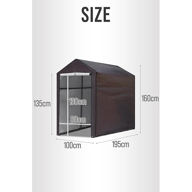 ✅【商品詳細】■サイズ:組立時 : (約)100cm×195cm×160cm 入り口 : (約)80cm×130cm ■材質:フレーム : スチール 他 ■生地 : ポリエステル ■重量:(約)12kg ■カラー:・ダークブラウン・ライトベージュ ■耐水圧:1,500mm以上 ■付属品:・固定バンドx9・ペグ(芝生用)x6・固定金具(コンクリート用)x6・釘(コンクリート用)x12・取扱説明書 ■特記事項:※組み立ては2人以上で行ってください。※台風などの強風時は使用を中止し、カバーは外してください。風で飛ばされたり、転倒して周囲のものを破損・破壊させる原因となります。※固定金具を使用する場合、ペグ、釘打ちのハンマーは別途ご用意ください。※商品は、モニターによって色合いが異なって見える場合があります。 また、仕様・デザインは改良のため予告なく変更することがあります。