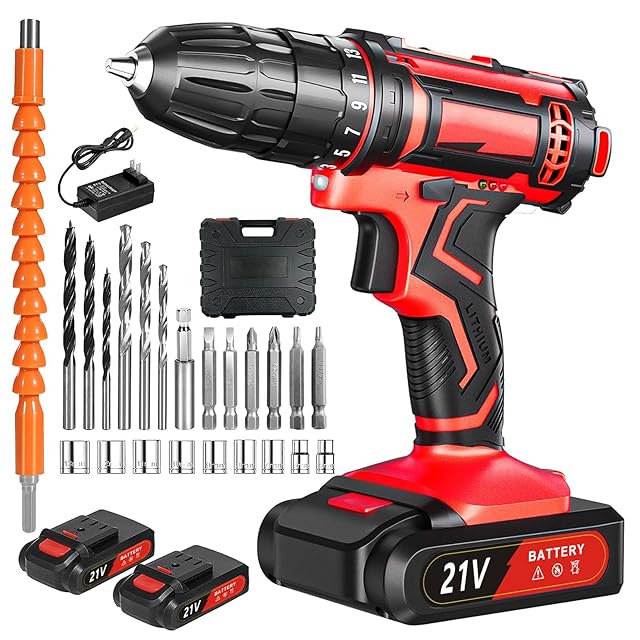 【21V高性能・コードレス電動ドライバーセット】電動ドリル、ドライバー、ネジ締めの3役をこなす多機能設計で、家具の組み立てや木材の穴開けなど幅広い作業に対応し、コードレス仕様に加え1.5Ahの大容量バッテリーを2個搭載しているため、電源がない場所でも長時間の連続作業が可能で、わずか1.2kg(バッテリー付き)の軽量設計により片手でも扱いやすく、女性でもDIY作業が快適に行えます。