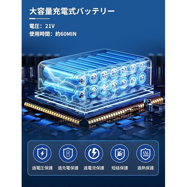 【大容量リチウムバッテリー・安全保護満載】 この充電式ドライバーは21V 1.5Ahのリチウムバッテリーを2個搭載しており、過充電、過放電、過電流、短絡、過熱保護など複数の安全機能が備わっています。これにより、安定した性能と高い信頼性を提供し、1回の充電で約30~60分使用可能で、フル充電にはわずか2時間と短時間で完了します。予備のバッテリーがあるため、作業中に電池切れの心配がなく、安心して作業を続けることができます。