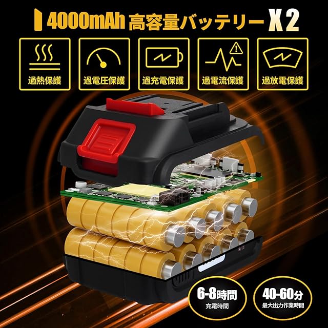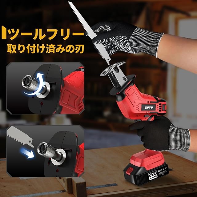 【Amazon.co.jp 限定】電動ノコギリ 充電式 レシプロソー【2個の4000mAhバッテリー】8枚の高炭素鋼のノコギリ刃 軽量 小型 枝切り 竹を切る 庭木の剪定 粗大ごみ切断 木材切断 金属切断 家庭用 日本語取扱説明書付(rad-901)