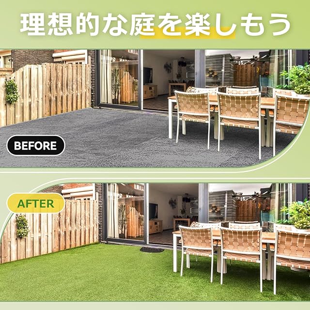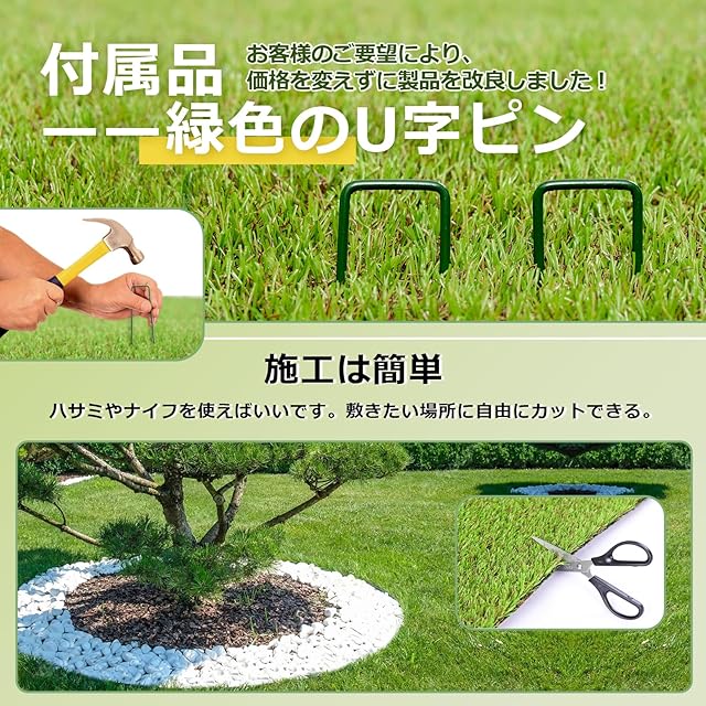 【品質保証】強度・耐久性UPの素材を使い、密度と厚みを増やし、よく長くお使いいただけます。 ※ご注意: ◆弊社商品は生産ロットの違いより、色、芝糸の形状にばらつきがでる場合がございます。 ◆芝が寝ているときは手袋を使い、芝が立つように芝方向の逆に撫でて逆立てください。一時的に復活します。 ◆人工芝には芝向きがありますので、向きを合わせて施工を行ってください。 ◆人工芝が段ボールの筒に固定されているため、釘やホッチキスが使用されていることがあります。大きなサイズの芝生を開梱する際は、ご注意ください。 ご使用中、問題がありましたら、お気軽にアマゾンの購入履歴よりご注文番号で弊社のメールで連絡してください。24時間内に返事いたします。
