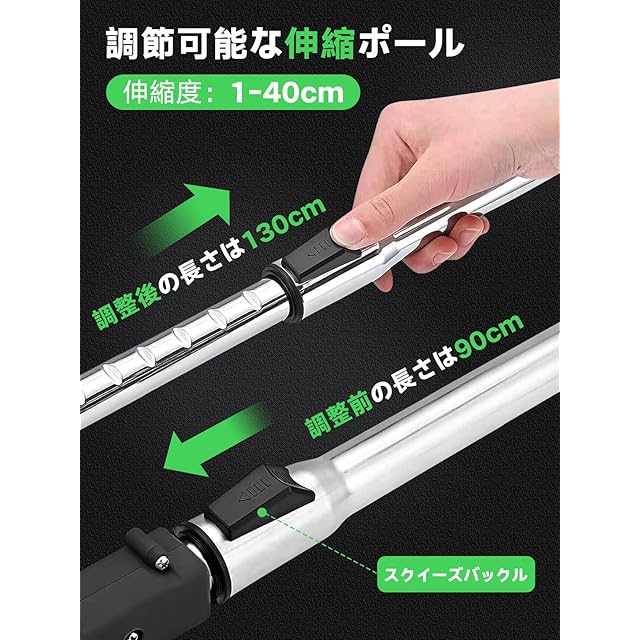 ✅【3段階で角度調整可能&長さ調整可能です】草刈り機機頭は独自の設計で、三段階で角度調整が可能で、異なる角度で柔軟に回転します。最大90度まで調整可能で、様々な操作環境に対応。本製品は調節可能な伸縮ポールを装備しており、78cm〜118cmまで伸縮式で長さ調整が可能なので、身長に合わせて長さやハンドル位置を調整でき、快適性とバランスが向上します! 平地でも傾斜地でもこの芝刈り機なら楽々対応!低い姿勢を取ることなく茂みの裏側も簡単にトリミング可能で、様々な身長のユーザーに対応。ヘッド角度調節ボタンを押すだけで0-90°の範囲でヘッド角度を調整でき、庭の隅や斜面など複雑な地形にも柔軟に対応,女性や体力に自信のない方でも楽々操作可能。