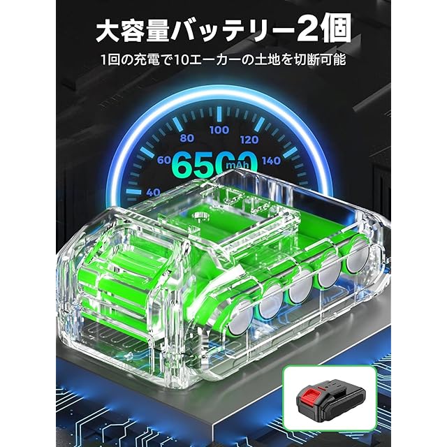 ✅【純銅モーター&大容量バッテリー】草刈り機は最新の研究開発技術を活かし、純銅モーターを使用しています!180W強力パワー純銅モーター、無負荷回転数18000rpm、切断径最大15cmまで対応、剪定作業の効率化! 6500mAh大容量21Vバッテリー2個も搭載しており、1.5時間で40分稼働可能! 芝刈り機の稼働時間を延ばすために、2つのバッテリーを交互に使用することをお勧めします。従来のモデルと比較して、出力が30%増加し、無負荷回転数が最大20,000rpm、消費電力が20%削減され、単位面積あたりの芝刈り時間が50%短縮されるというダブルブレイクスルーを達成しました。電源:ポータブル バッテリ式/13000mah 大容量バッテリー(6500mAhバッテリー 2個搭載)