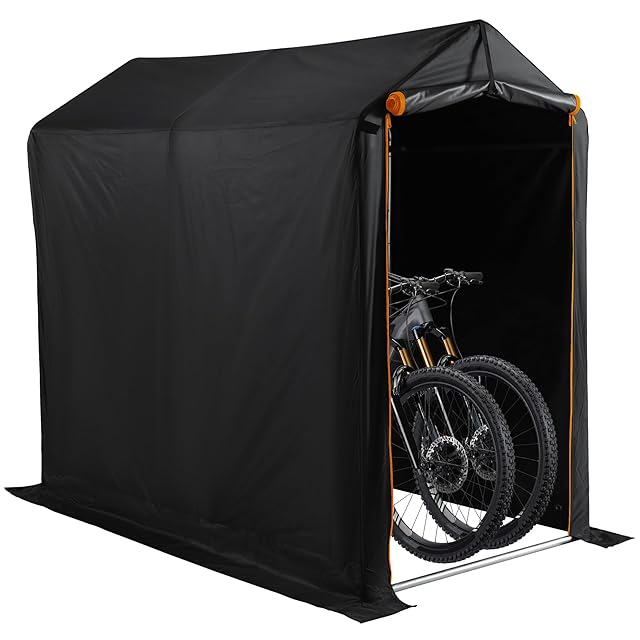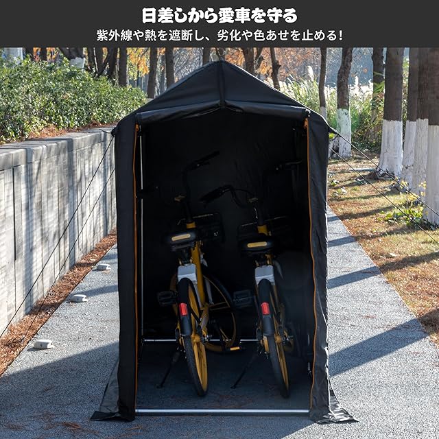 Alebert サイクルハウス 自転車テント 1-3台収納 バイクガレージ サイクルガレージ サイクルポート 自転車置き場 屋外 自転車収納 ガレージテント バイクシェルター 自転車屋根 自転車倉庫 高耐久鋼フレーム UV加工シート・遮熱・撥水加工 雨よけ 家庭・アウトドア・戸外用 (ブラック, Sサイズ)