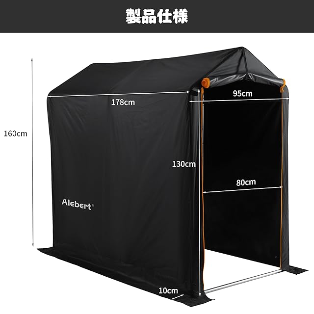 【商品仕様】商品サイズ:幅95*奥行178*高さ160cm、入り口サイズ:幅80*高さ130cm、自転車1-3台収納可能。庭や軒先、畑や田んぼなど様々な場所でお使い頂けます。