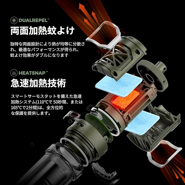 【抜群の蚊取り効果】両面加熱式蚊取りパッドと急速加熱技術(110℃50秒または165℃2分)により、均一な熱分布、最適な性能、パッドの効率的な活性化を実現し、最高の蚊取り効果を発揮します。