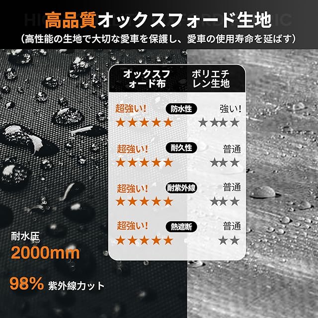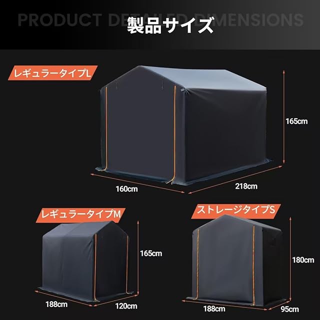 [風雨・日差し・粉塵を防ぎ]:カバーには高密度の生地を使用し、内部には撥水加工が施されており、耐水圧2,000mmの防水性能と優れたUV防止効果を備えています。縫い目にはすべてシーリング加工が施されており、日光や雨水の侵入を防止、裾部の延長スカートも雨水や小動物の侵入防止の機能を備えています。サイクルハウスは愛車を風雨、日差し、粉塵から守り、使用寿命を延ばします。