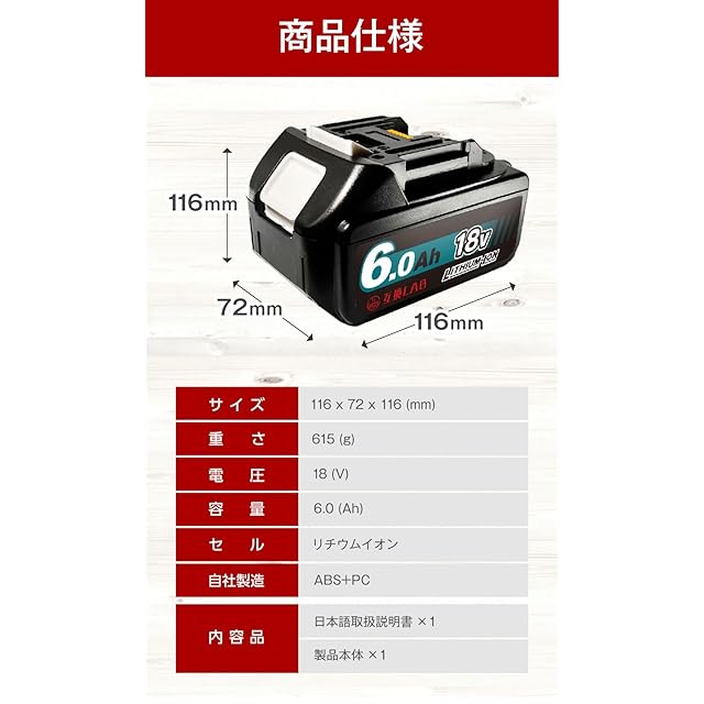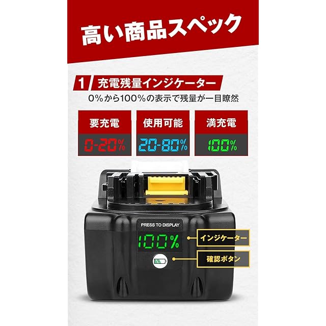 【商品説明】日本の会社が安全性や品質にこだわって企画し、正規のPSEの届け出を自社で行い、ISO9001認証の信頼できる中国工場にて生産しているMAKITA 互換バッテリーです。マキタ純正の電動工具はもちろん、草刈機、掃除機、集塵機、ブロアー、空気入れなど18Vの機種には全て対応しており、問題なくご使用いただけます。DC18RC、DC18RF、DC18RAなどの純正バッテリー充電器での充電も可能です。