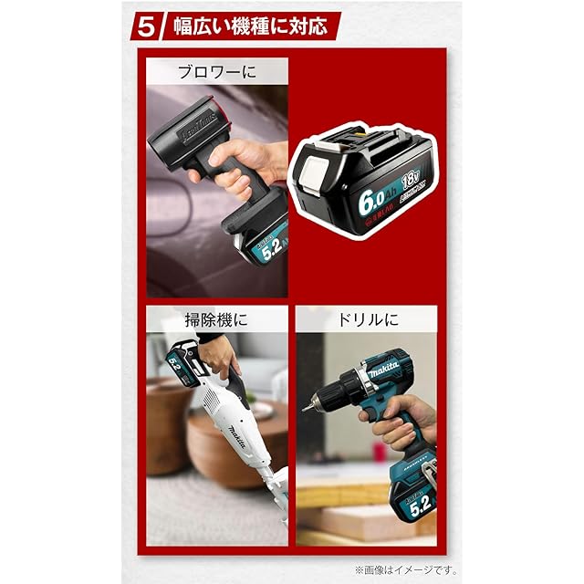 【マキタの同電圧全機種に対応】マキタ純正の電動工具はもちろん、草刈機、掃除機、集塵機、ブロアー、空気入れなど18Vの機種には全て対応しており、問題なくご使用いただけます。