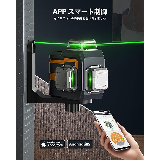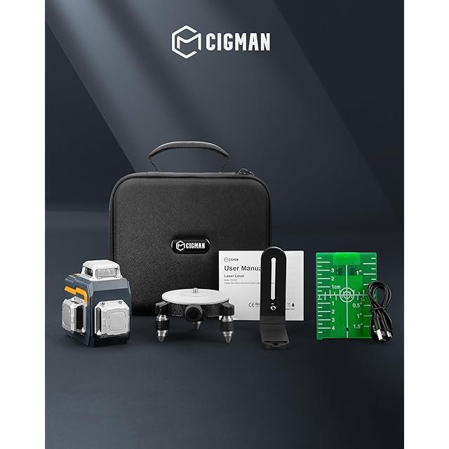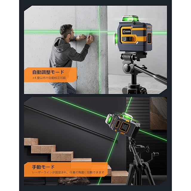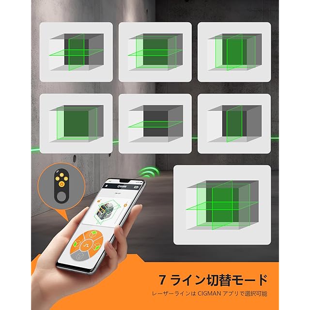 CIGMAN レーザー墨出し器 アプリで遠隔操作 3x360°グリーンレーザー 小型 スマホ操作 充電式水平器12ライン 自動補正 高精度 小型 DIY IP54防水防塵 輝度調整可能 磁気回転スタンド 日本語説明書付き