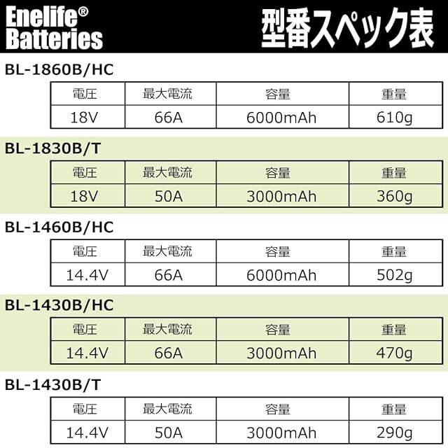 Enelife マキタ 互換 バッテリー 14.4V シリーズ 長寿命電池搭載 日本メーカー保証 電池残量表示機能 5億円製造物責任保険付 (6000mAh/単品(BL1460B/HC))
