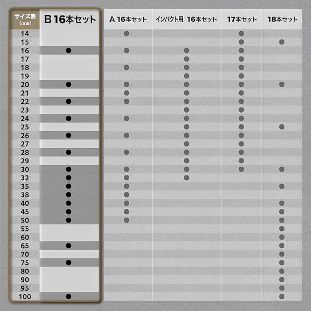 16個セット【仕様】 サイズ : 16・20・22・24・26・28・30・32・35・38・40・45・50・65・75・100 (mm)