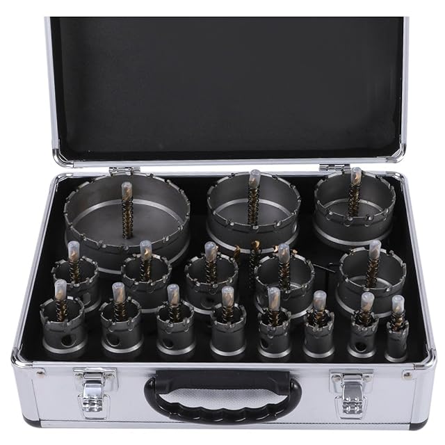 【現役電気工事士・大工推薦&監修】 超硬 ホールソーセット ステンレス 木工 鉄鋼用 対応 電工 16本セット16mm 20mm 22mm 24mm 26mm 28mm 30mm 32mm 35mm 38mm 40mm 45mm 50mm 65mm 75mm 100mm 保管用アタッシュケース付き (16本セットB:16~100mm)