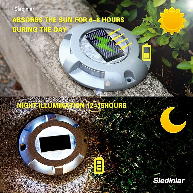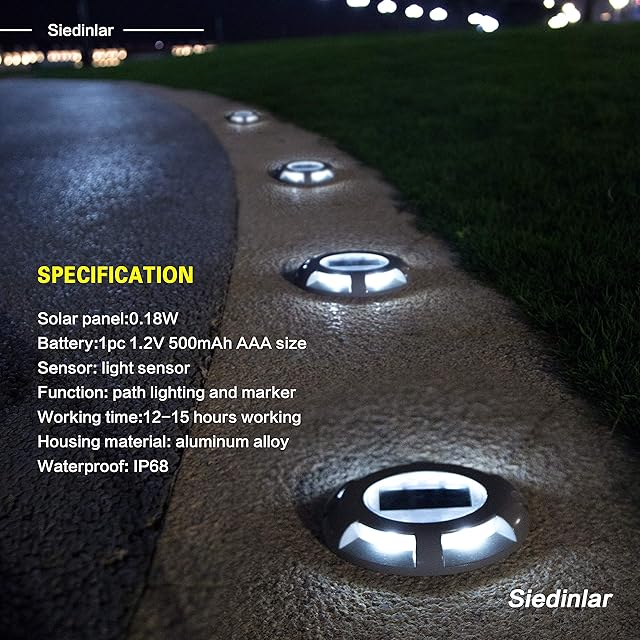 Siedinlar ガーデンライト 埋め込み式 ソーラーライト 屋外 防水 LED 金属製 デッキ 玄関 階段 足元 芝生 園芸 道路 駐車場 自動点灯 太陽光発電 白色光 4個セット