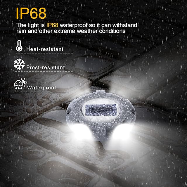 【IP68防水仕様】一年中に雨量多い日本では最適な防水性高い屋外ソーラーライトです。台風、暴雨、大雪など悪天気にあらゆる屋外条件で使用できます。防犯対策や避難用品としても利用できます。