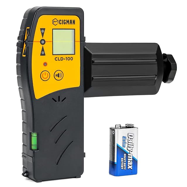 CIGMAN レーザー受光器 緑レーザー対応 50m作業距離 気泡管 ブザー音 ホルダー付き 日本語取扱説明書付き
