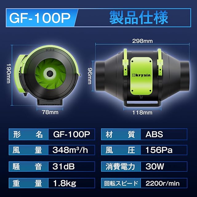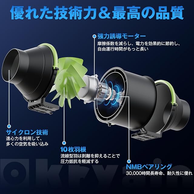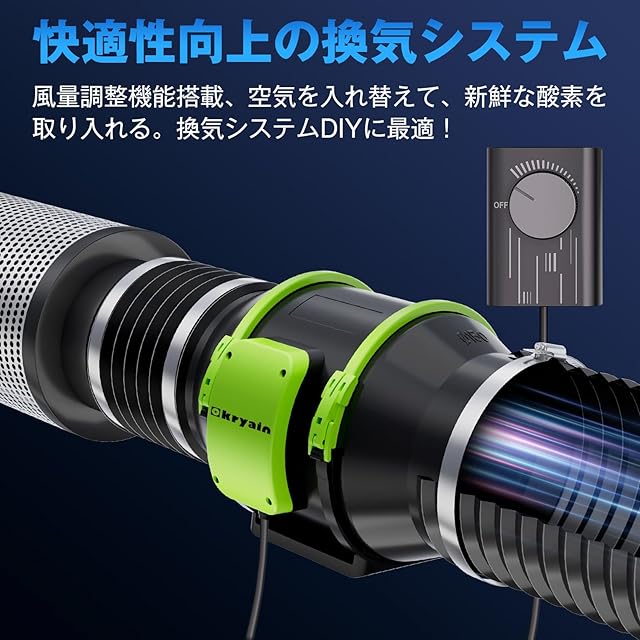 Okryain ダクトファン 100mm ダクト用換気扇 業務用有圧換気扇 無段階風量調速可能 風量348㎥/h 中間取付形ダクトファン 塗装ブース用 【インボイス制度登録店】 100-120V 部屋換気/DIY塗装/焼肉/温室/ペットトイレ