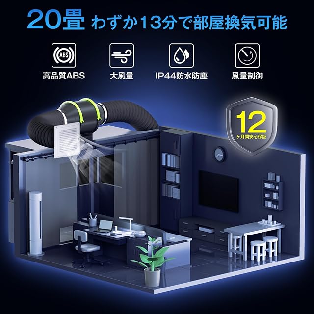 【省エネ&幅広い用途】ダクトファンの消費電力はわずか30W、8時間運転でも電気代6.48円を実現!おすすめの使用場所:ホテル、温室、映画館、喫茶店、会社、倉庫、トイレなど換気の悪い密閉空間。室内換気用、塗装ブース用、家で焼肉用、電子機械冷却用、ポータブルクーラー排気用、DIY換気システム用に最適。