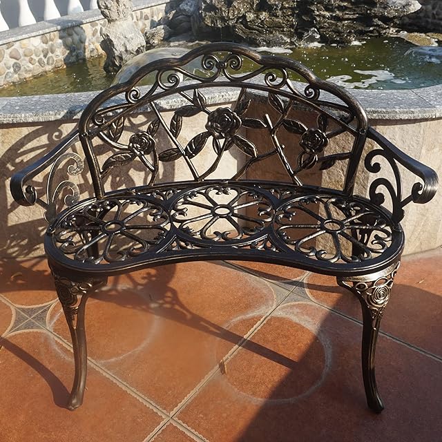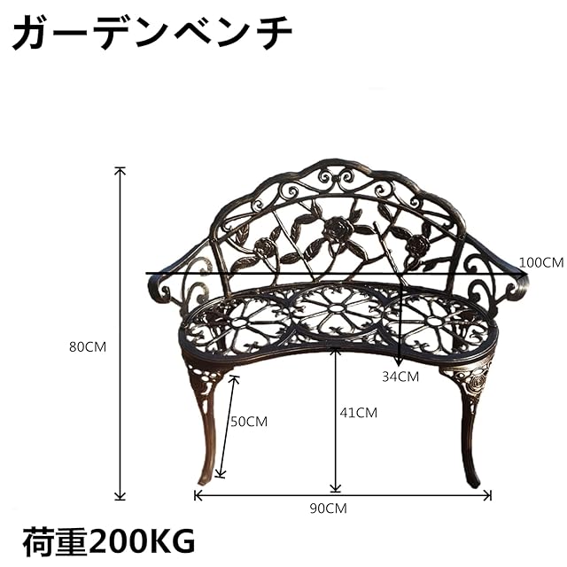 TangXiaoQiガーデンベンチ、メタルアルミニウムローズ、ガーデンポーチ公園前ポーチテラス屋外用 (こどうしょく)